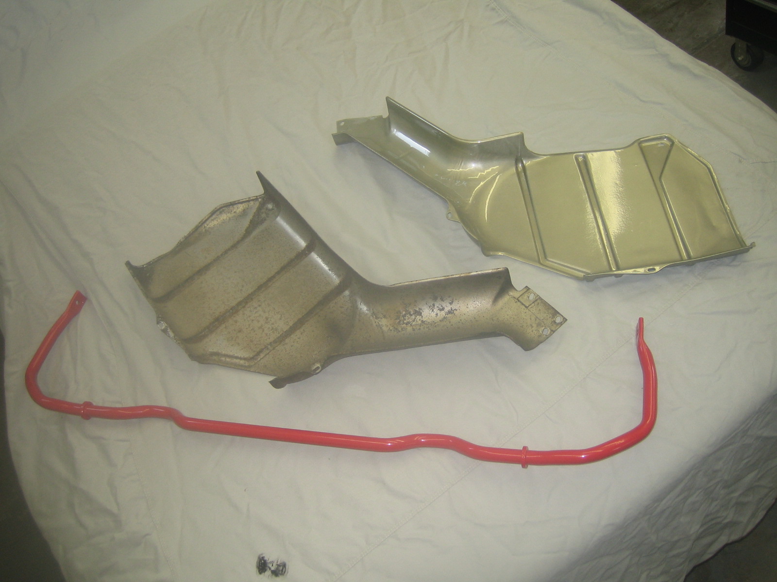 I took all the bolts and brackets I could find, packed them up and took them to the platers and then of course you find you missed a couple ... always the way. I also took the rear sway bar and one of the exhaust heat shield to be powder coated, I was interested in seeing how the heat shield came out.
